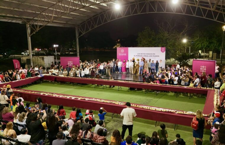 Junto a familias del Poniente de la ciudad, el Gobernador Joaquín Díaz Mena encabezó la partida de la tradicional Rosca de Reyes de 42 metros, elaborada por alumnos del Colegio Nacional de Educación Profesional Técnica (Conalep).