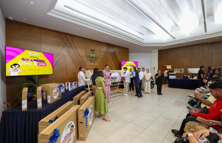 Mérida, Yucatán, lunes 27 de abril de 2026.- En reconocimiento al compromiso y corresponsabilidad de la ciudadanía que cumple oportunamente con el pago del impuesto predial, el Ayuntamiento de Mérida llevó a cabo el Sorteo “Gana Mérida, ganas tú”, en el que se entregaron 50 premios, entre automóviles, motocicletas, laptops, televisores y tabletas.
