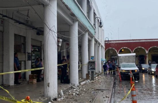 -Protección Civil reporta que no hay afectación al techo del edificio. -Retiran unos 10 metros lineales de concreto, de entre 10 y 15 centímetros, que decoraban la fachada. Mérida, Yucatán, sábado 28 de 2025.- El…