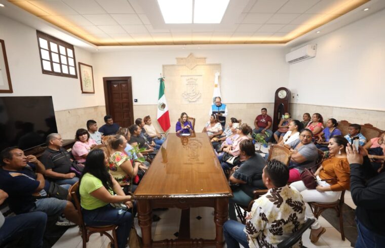 La alcaldesa de Mérida, Cecilia Patrón, recibió a tianguistas que asistieron al Palacio Municipal durante el Miércoles Ciudadano, con quienes se comprometió a no aplicarles ningún ajuste al derecho de uso de suelo en espacio público.