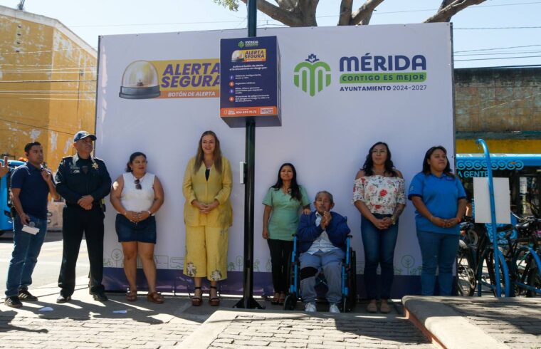 La Presidenta Municipal de Mérida, Cecilia Patrón Laviada, puso en marcha el botón “Alerta Segura” en el parque de San Cristóbal, como parte de las acciones para fortalecer la seguridad y tranquilidad en el Centro Histórico.