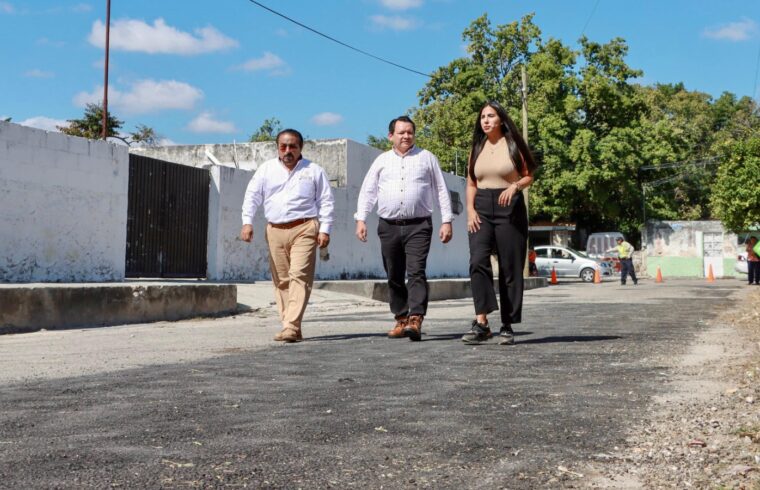El Gobernador Joaquín Díaz Mena visitó la colonia Melitón Salazar para supervisar los trabajos del esquema «Bacheo de calles para el Bienestar de Mérida».