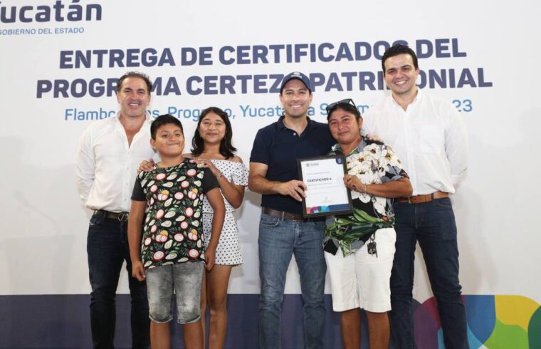 Progreso, Yucatán, 11 de marzo de 2023.- Después de varios años de ser olvidadas por las administraciones estatales anteriores, 205 familias de la comisaría Flamboyanes de Progreso, que vivían en la incertidumbre jurídica de sus predios, cuentan ahora con la certeza de su patrimonio y podrán vivir de forma más digna y segura tras recibir del Gobernador Mauricio Vila Dosal sus certificados del programa Certeza Patrimonial.