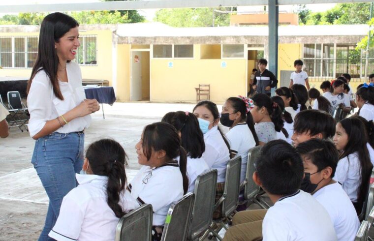 -En representación de Vila Dosal, la directora del Servicio Nacional de Empleo en Yucatán (SNEY), Itzel Falla Uribe, llevó estos respaldos a alumnos de la primaria “Cuitláhuac”.