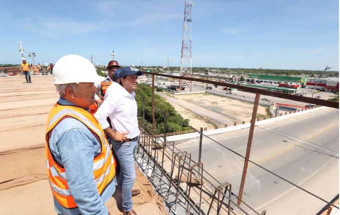Junto con el funcionario estatal, Vila Dosal recorrió por arriba este viaducto elevado y constató las labores que llevan a cabo cuadrillas de trabajadores para cumplir con el compromiso de tenerlo listo próximamente, el cual, sin duda, representa un antes y un después en la vida de este puerto yucateco, considerado como el más importante en el sureste de México.
