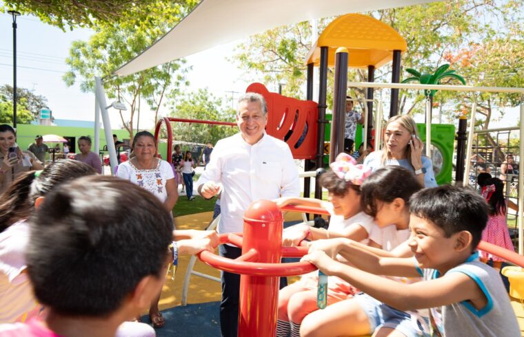 A su vez, David Loria Magdub, director de Obras Públicas, explicó que el parque tiene un área de 2,720 m2, donde se construyó una nueva área infantil con pasto sintético y caucho, se colocó una cubierta de tensa estructura con lona y una cerca perimetral para un mejor cuidado del mobiliario.