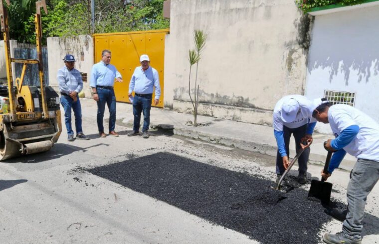 El Presidente Municipal, Alejandro Ruz Castro, supervisó las acciones de bacheo en la colonia Francisco I. Madero.