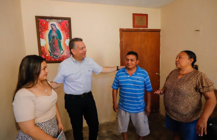 En visita a la familia Cob Chalé, de la comisaría de Xcunyá, el Presidente Municipal felicitó a la estudiante de sexto semestre de contabilidad, Elvia Pamela, quien, con un promedio de 96, forma parte del programa Excelencia Universitaria.