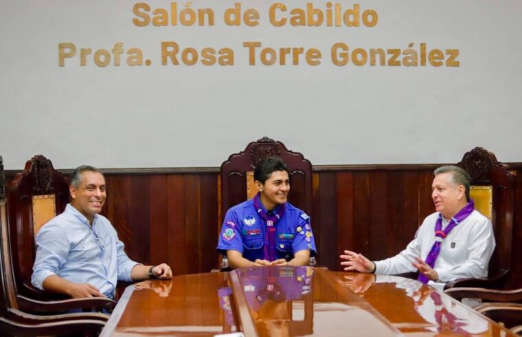 En el acto simbólico «Presidente Municipal por un Día» que se celebró en el Salón de los Retratos del Centro Cultural de Mérida Olimpo, el Alcalde entregó la estafeta al joven scout Lenin Monroy Cisneros, a quien le reconoció su compromiso y vocación por el servicio social y por la preservación del medio ambiente.