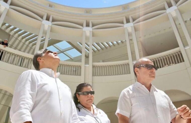 El Alcalde Alejandro Ruz Castro presenció este fenómeno astronómico en el Patio Central del Centro Cultural de Mérida «Olimpo», que fue la sede oficial, junto con otros dos observatorios ubicados en El Gran Museo de la Cultura Maya e Izamal.