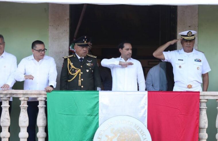 Momentos antes de las 8 de la mañana, Vila Dosal, acompañado de la titular de la Secretaría General de Gobierno (SGG), María Fritz Sierra, y representantes de los Poderes, realizó el izamiento del lábaro patrio en la asta central de la Plaza Grande, con lo que dio inicio a las actividades conmemorativas por esta efeméride.