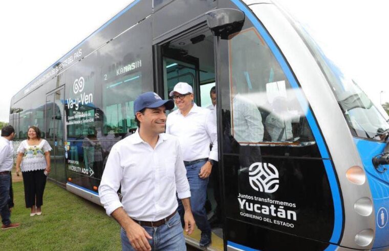 Mérida, Yucatán, 13 de diciembre se 2023.- La movilidad en Yucatán continúa transformándose y acercando un servicio de calidad a los yucatecos, así lo demostró el Gobernador Mauricio Vila Dosal al realizar el primer recorrido de prueba del Ie-tram, ruta 100% eléctrica, única en su tipo en todo el sureste y Latinoamérica, con modernas unidades eléctricas que forman parte del sistema de transporte público “Va y Ven” y cuya operación de su primera ruta Paseo 60-La Plancha-Teya entrará en operación este sábado.