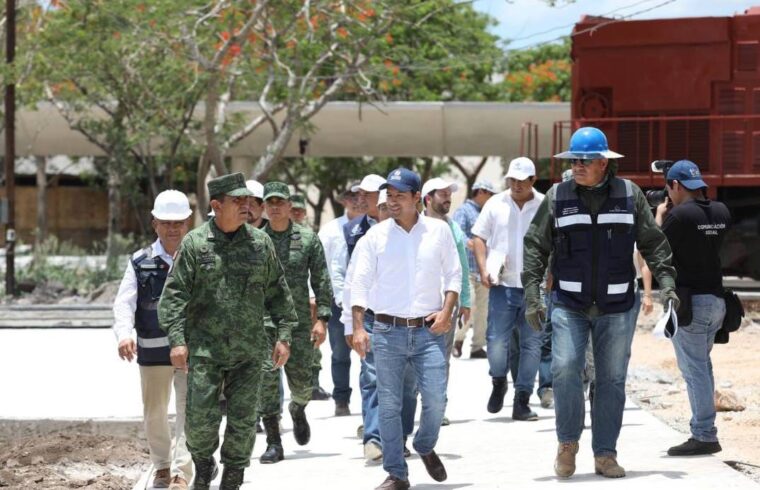Acompañado de Alcalde de Mérida, Renán Barrera Concha, el Gobernador también visitó el andador lineal, la zona de vagones y aquellas en que habrá importantes atractivos, como el Mercado Gastronómico, el Skatepark, el Museo, andador circular, lago artificial, auditorio y anfiteatro.