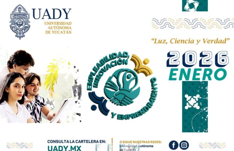 Con el objetivo de fortalecer las competencias profesionales de su comunidad universitaria y prepararla para los retos del entorno laboral actual, la Universidad Autónoma de Yucatán (UADY) impulsa durante el mes de enero una agenda estratégica enfocada en la empleabilidad, la innovación y el emprendimiento, a través de diversas actividades académicas, formativas y de vinculación.