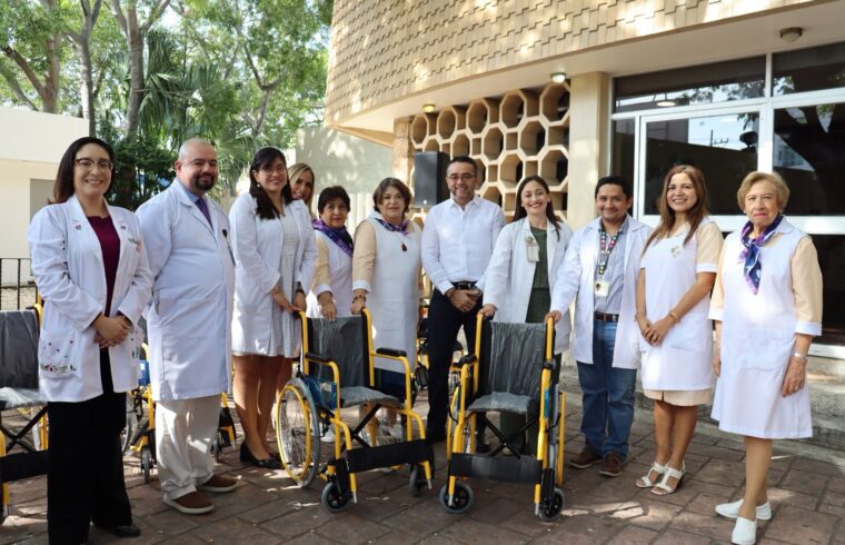 Entrega Presidenta honoraria del Voluntariado IMSS, sillas de ruedas pediátricas en Seguro Social Yucatán
