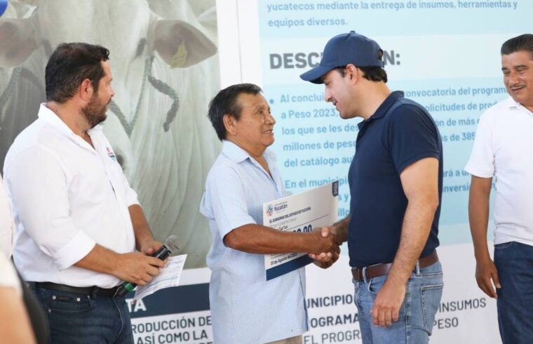 Acompañado del alcalde anfitrión, Luis Fernely Polanco Tun, Vila Dosal refrendó su apoyo a las y los productores con la entrega de los apoyos del esquema Peso a Peso con el cual se están beneficiando 168 productores y productoras de esta localidad a través de una inversión de más de 2 millones de pesos, esto, como parte de los más de 16,970 beneficiarios que recibirán más de 385,500 productos entre insumos, herramientas y equipamiento.