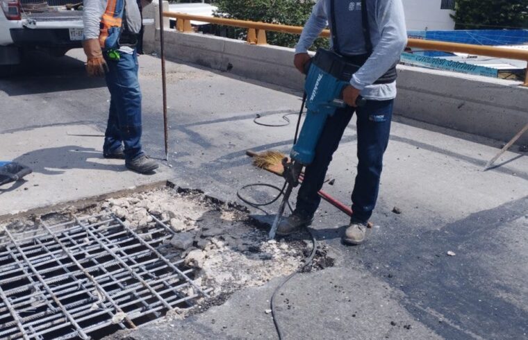 Desde ayer lunes, personal del Instituto de Infraestructura Carretera del estado (Incay) se encuentra realizando las labores que consistirán en el retiro y nuevo colado de losas de la vía de rodamiento del puente, debido a que ya presentaban notable deterioro por paso del tiempo.