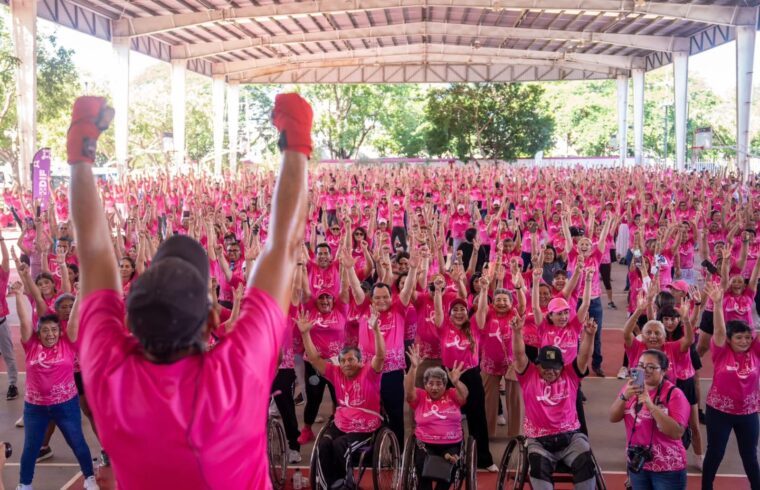 “Estoy muy contento porque hoy el color rosa inunda este espacio para dar un mensaje poderoso: que la vida se defiende con conciencia, con prevención, con unión y con esperanza. Verles a ustedes aquí, en esta macroclase de activación física por el Día Mundial contra el Cáncer de Mama, es un llamado a cuidar nuestro cuerpo, a cuidar a quienes amamos y a fortalecer la cultura de la prevención en todo Yucatán”, manifestó el Gobernador.