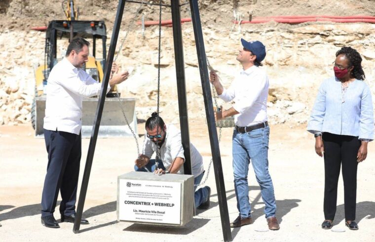 Mérida, Yucatán, 18 de diciembre de 2023.- Llegan más empleos para todas y todos los yucatecos con la empresa Webhelp México, que generará otros 1,200 nuevos puestos, con los cuales se llegará a 2,400 con su nueva sede de Concentrix + Webhelp, al encabezar el Gobernador Mauricio Vila Dosal, el inicio de los trabajos de construcción de la Torre Indico con una inversión de 340 millones de pesos y que generará hasta 500 empleos durante su construcción, fortaleciendo de esta manera, la economía de las familias yucatecas con más empleos mejor pagados.