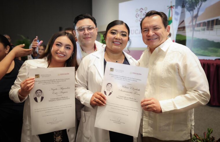 Sosa Elízaga añadió que, gracias al respaldo de la Presidenta de México, Claudia Sheinbaum Pardo, y al programa de becas, los estudiantes tuvieron acceso a una carrera gratuita, con internado médico integral, títulos electrónicos y cédulas profesionales registradas, lo que garantiza su incorporación plena al sistema de salud.