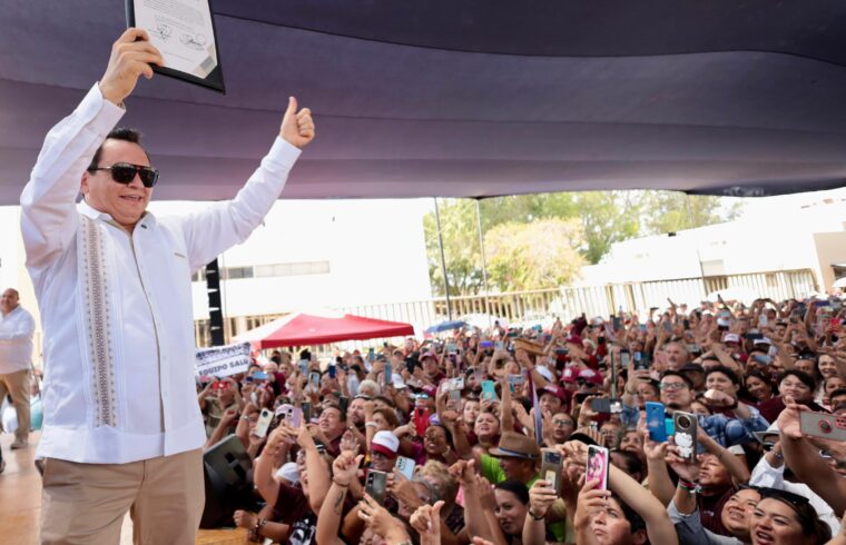 «No les voy a fallar», aseguró Díaz Mena, ante miles de yucatecos que se dieron cita en las instalaciones del Iepac. Huacho se comprometió a formar un gobierno humanista y de bienestar para todas y todos, para comenzar a escribir una nueva historia para Yucatán.