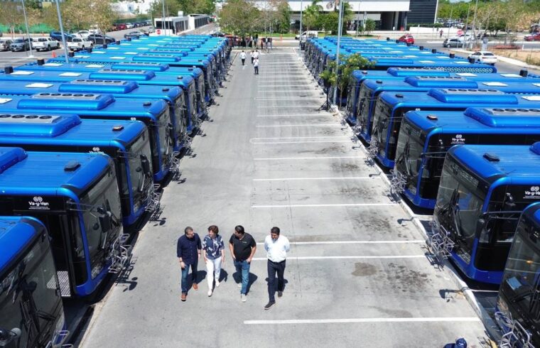 Con éstas, ya son 90 unidades híbridas de un total de 267 que se incorporarán al sistema de transporte público en Yucatán, las cuales contaminan 60 veces menos que un autobús convencional y no generan ruido.