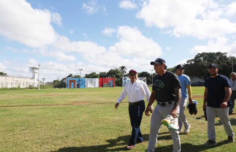 Invitado por las autoridades penitenciarias, el pelotero yucateco de Los Rays de Tampa Bay, “Manny” Rodríguez, acude al Centro de Reinserción Social de Mérida (CERESO) para participar en un partido amistoso de beisbol con los internos.