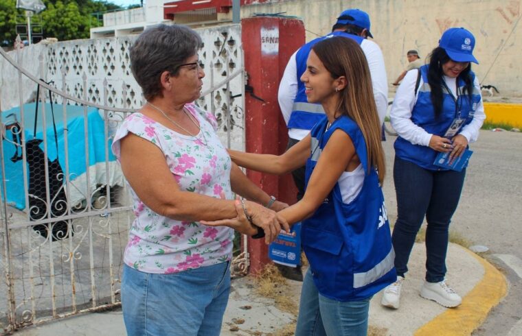 Rodríguez Heredia realizó las visitas de manera coordinada con las mujeres y hombres identificados por sus chalecos azules, quienes cada día parten de puntos de encuentro para cubrir diferentes zonas, difundiendo los programas del Gobierno estatal.