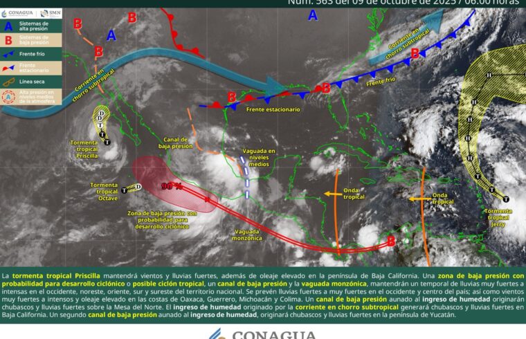 En las próximas 24 horas, en Yucatán se prevé cielo parcialmente nublado a nublado, con probabilidad de tormentas fuertes a puntuales muy fuertes en el oriente y sur del estado, así como intervalos de chubascos con tormenta, sin descartar tormentas puntuales fuertes, en el noreste, norte-centro y noroeste de la entidad. Ambiente caluroso a muy caluroso durante el día y cálido en la noche.