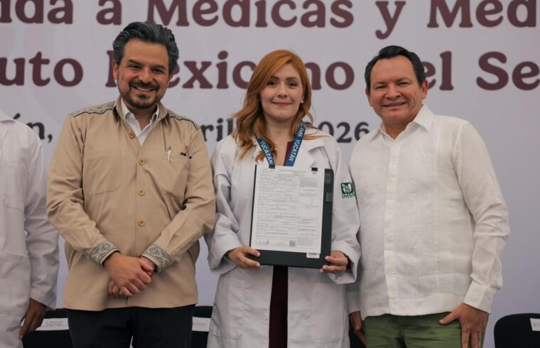 El Gobernador Joaquín Díaz Mena encabezó, junto con el director general del Instituto Mexicano del Seguro Social (IMSS), Zoé Robledo Aburto, la entrega de 278 plazas a médicas y médicos especialistas que se integran al sistema de salud estatal para fortalecer la atención directa a las familias yucatecas.
