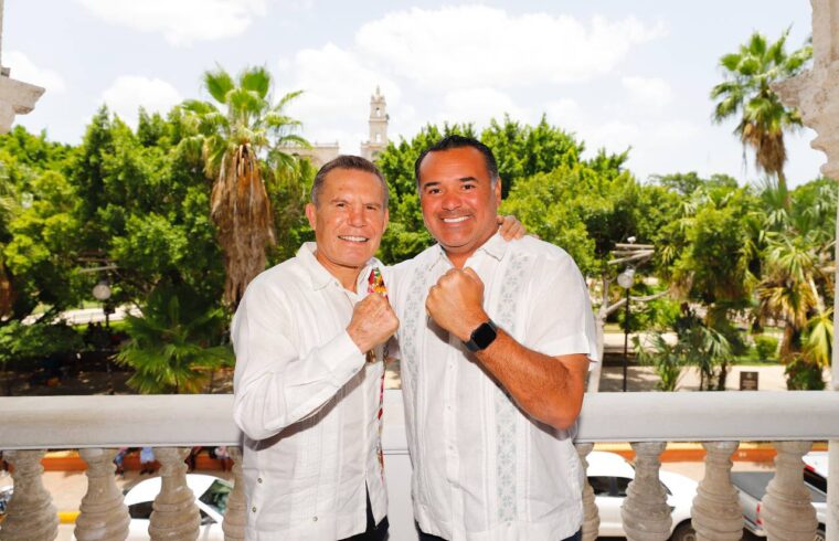 Como primer punto de la agenda de trabajo, estuvo la reunión que sostuvieron en el Salón de Cabildo “Rosa Torre González”, donde el Presidente Municipal recibió e intercambió puntos de vista sobre el fomento deportivo con Julio César Chávez, quien es un referente del boxeo para México, especialmente para Mérida y Yucatán de donde han emergido otros grandes campeones mundiales como Miguel Ángel Canto Solís, Freddie Castillo Martínez, “El Chato” y Gustavo Hernán Espadas Cruz.