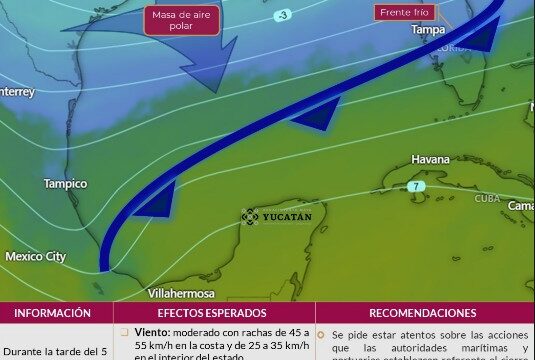 Una intensa ola de frío ártico prolongará las bajas temperaturas en Yucatán y en toda la Península, ocasionando que, tras el paso del frente frío número 32 previsto para el sábado 31 de enero, los valores desciendan hasta los 3 °C o menos el próximo lunes 2 de febrero. Así lo informó el maestro en Ingeniería Ambiental y especialista de El Tiempo en Yucatán, Luis Alberto Noh Miranda.