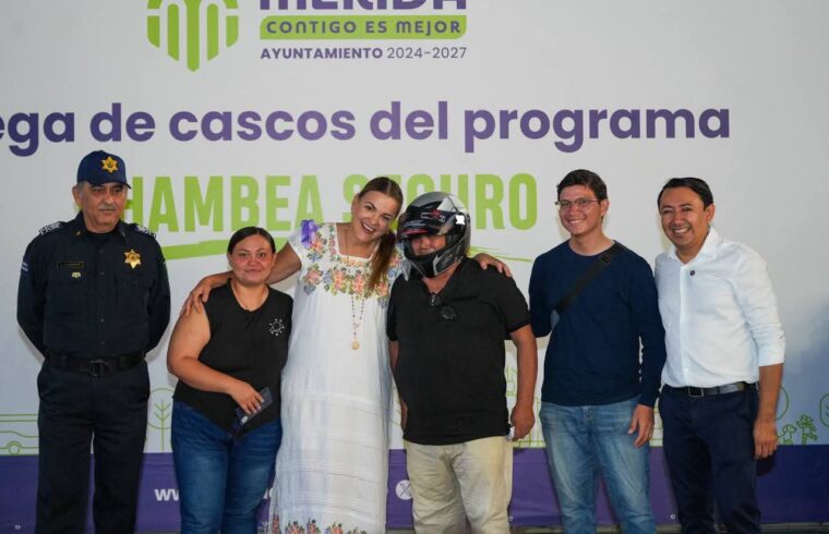 Mérida, Yucatán, miércoles 16 de julio de 2025.- El Ayuntamiento de Mérida invita a trabajadoras y trabajadores que utilizan la motocicleta como herramienta de trabajo a participar en la segunda etapa del programa “Chambea Seguro”, el cual continúa con la recepción de solicitudes para la entrega gratuita de cascos certificados con norma DOT, con el objetivo de proteger su integridad física y apoyar su economía familiar, prioridad para la alcaldesa Cecilia Patrón Laviada.