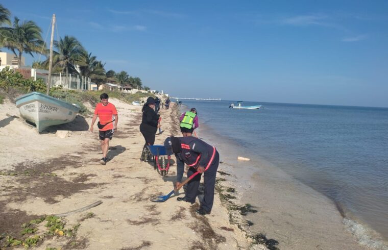 Las tareas de monitoreo y vigilancia, así como las labores de saneamiento, recoja de las especies marinas que recalan en la orilla, recorridos de inspección y orientación sanitaria a la población, se mantienen en la costa yucateca por parte del Comité Interinstitucional de Vigilancia de Marea Roja.