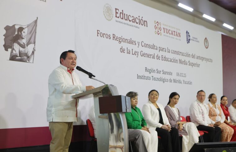Desde Yucatán, se contribuye a la transformación profunda del sistema educativo de nuestro país, al inaugurar los Foros Regionales y Consulta para la construcción del anteproyecto de la Ley General de Educación Media Superior en la región sureste, que reúne a docentes, académicos, especialistas, autoridades educativas, legisladores, estudiantes, padres y madres de familia, y representantes de la organización civil de Yucatán y los estados de Campeche, Chiapas, Oaxaca, Quintana Roo, Tabasco y Veracruz.