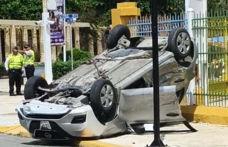Mérida, Yucatán.— Un aparatoso accidente de tránsito se registró este jueves en la colonia García Ginerés, en el cruce de la calle 20 con avenida Colón, donde un vehículo terminó volcado, lo que generó la movilización de cuerpos de emergencia y momentos de tensión entre vecinos y automovilistas.