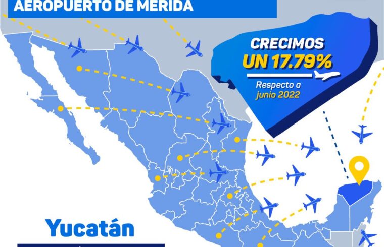 Mérida, Yucatán, 6 de julio de 2023.- Este 2023, Yucatán registró el mejor junio en su historia en cuanto a movimiento de pasajeros por vía aérea, pues el Aeropuerto Internacional de Mérida “Manuel Crescencio Rejón” recibió 282,659 viajeros, lo que significó un crecimiento de casi 18% respecto del mismo periodo, pero de 2022, fruto de la promoción turística que encabeza el Gobernador Mauricio Vila Dosal para posicionar al estado ante los ojos del mundo e impulsar la llegada de más visitantes.