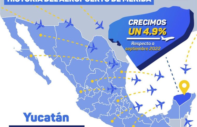 De acuerdo con el reporte dado a conocer, en ese mismo periodo, el Aeropuerto Internacional de Mérida “Manuel Crescencio Rejón“ registró un movimiento de pasajeros de vuelos nacionales de 246,828 personas. Esto significó un crecimiento de 4.8% respecto de septiembre, pero del año pasado; mientras que de internacionales fue de 20,905 personas, con un aumento del 5.3% respecto al mismo mes de 2022.