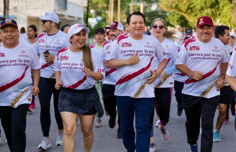 Yucatán se sumó a la Carrera por la Paz y contra las Adicciones que impulsa la presidenta Claudia Sheinbaum para fomentar la actividad física y concienciar a la población sobre la importancia de alejarse de las adicciones y que se realizó de manera simultánea en las 32 entidades.